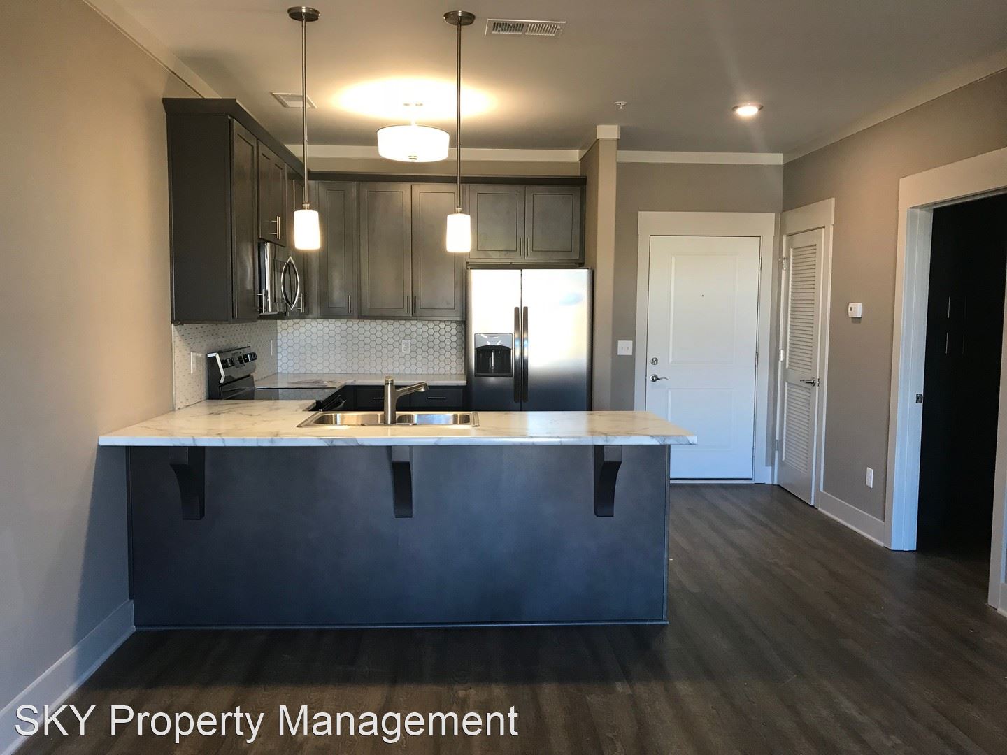 Lenox Place - Second Floor Open Concept Flat Stainless Steel Kitchen Appliances Tile Kitchen Backsplash Hardwood Laminate Flooring Throughout Juliet Balcony Facing Parking Lot Water Utilities Included Washer and Dryer Set Included